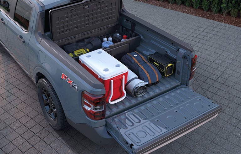 5*Max payload on Maverick® pickup with AWD 2.0L engine and FWD 2.5L hybrid engine. Excludes Maverick Lobo™ and TREMOR® models. Max payload varies and is based on accessories and vehicle configuration. See label on doorjamb for carrying capacity of a specific vehicle. Always properly secure cargo.