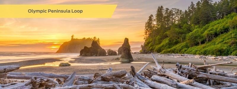 You can start and end in Olympia, encircling the Olympic Peninsula and Olympic National Park before skirting the western edge of Puget Sound and returning to the capital city. Total mileage is a bit over 300, so theoretically you could do it in a day.
